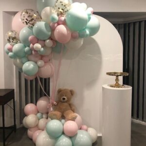 Arcada este realizata din baloane de latex de diferite dimensiuni si poti alege orice culoare sau combinatie de culori doresti.